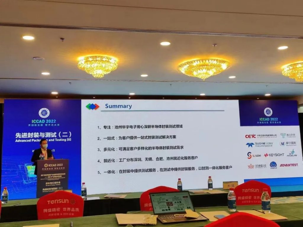 在ICCAD 12月27日舉辦的先進封裝與測試論壇上,池州華宇電子科技股份有限公司董事長彭勇以《探索集成電路先進封裝發展新趨勢》為題做了演講,以先進封裝現階段的發展趨勢以及華宇電子在先進封裝領域取得的成果,華宇電子可為客戶提供一站式、多元化、就近化、一體化的封裝測試解決方案,為客戶創造價值。